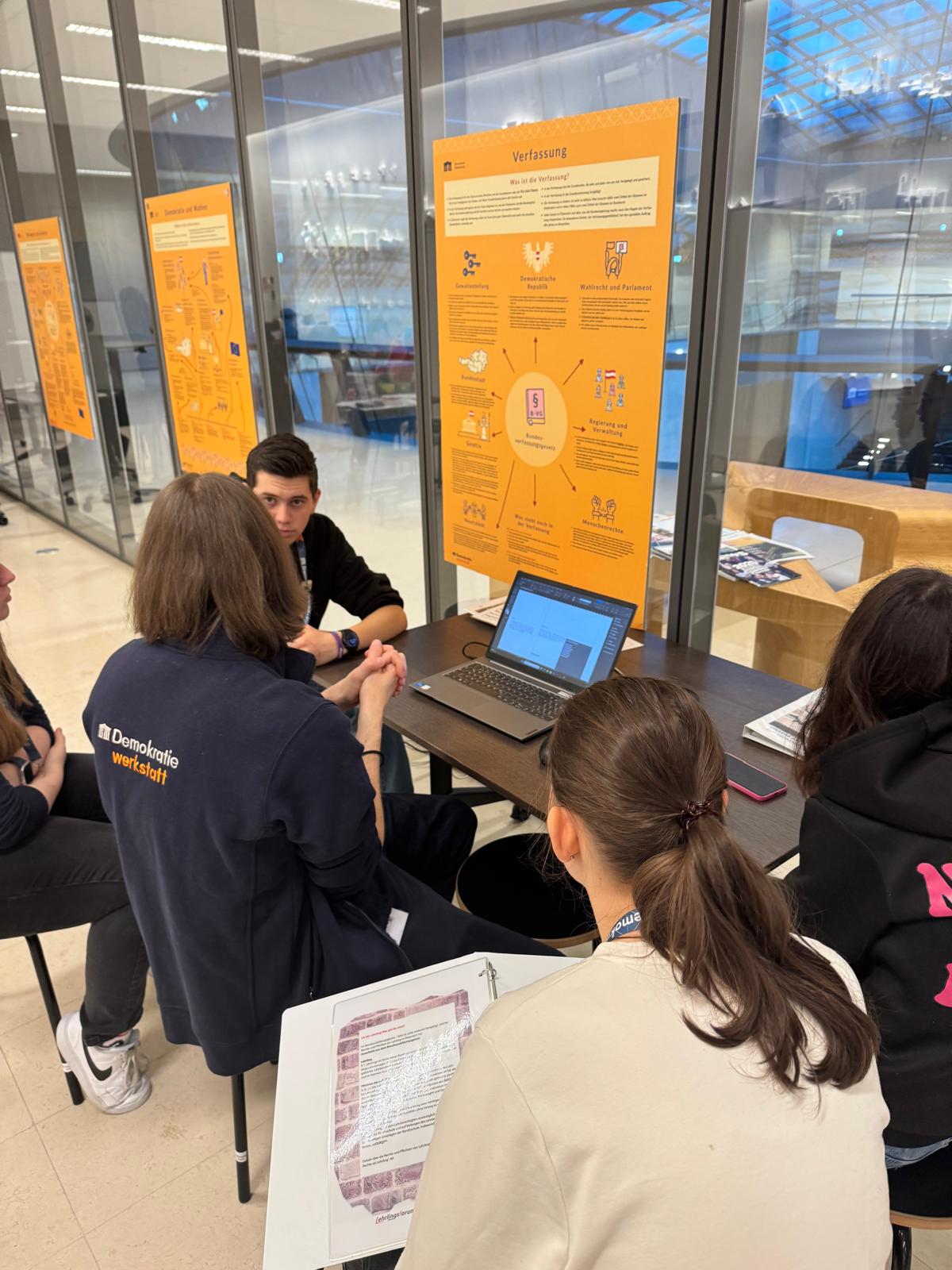 Im Rahmen interaktiver Workshops setzten sich die Teilnehmer*innen mit zentralen Themen wie Demokratieverständnis, der Arbeit des Parlaments, Medienbildung sowie Zivilcourage auseinander. Dabei wurden aktuelle gesellschaftliche Fragestellungen aufgegriffen, gemeinsam reflektiert und kritisch diskutiert.