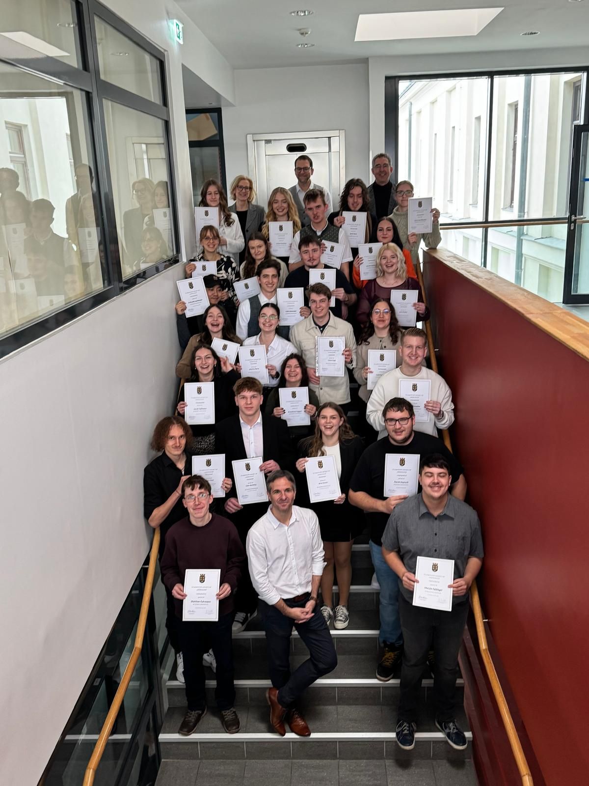 Im Rahmen einer feierlichen Veranstaltung fand am 30.1.2026 die Diplomverleihung des 2. Lehrgangs 2025/26 an unserer Schule statt. Dabei wurden die Schüler*innen der Abschlussklassen für ihre erbrachten Leistungen und ihren erfolgreichen Schulabschluss geehrt.
