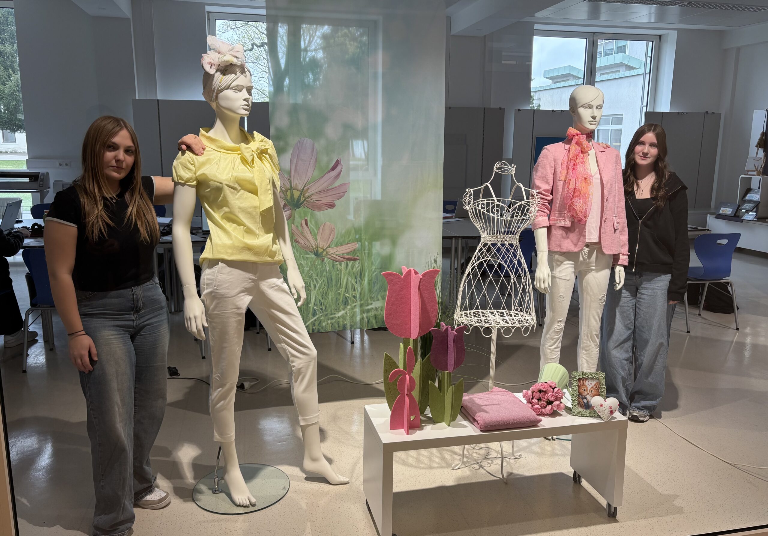 Mit viel Kreativität und Begeisterung für Farben und Mode wurden die Schaufenster und der Juwelierbereich von den Schüler*innen der 1T2 saisonal gestaltet und sorgen für Frühlingsstimmung in der Schule.